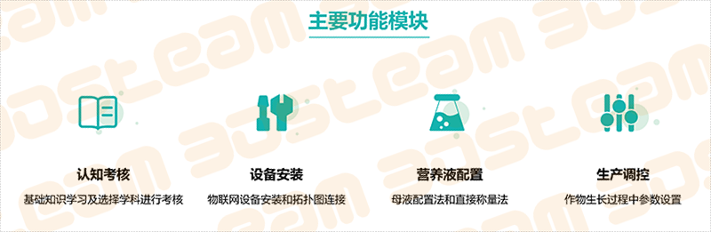软件具备自由学习与实训考核的功能,实训目标是能够对不同的作物生产对现代化智能温室进行设置,达到符合要求的地步。