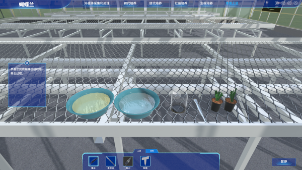 软件模拟多种植物繁殖方式,包括扦插、嫁接、组织培养、播种、分球等详细的操作流程
